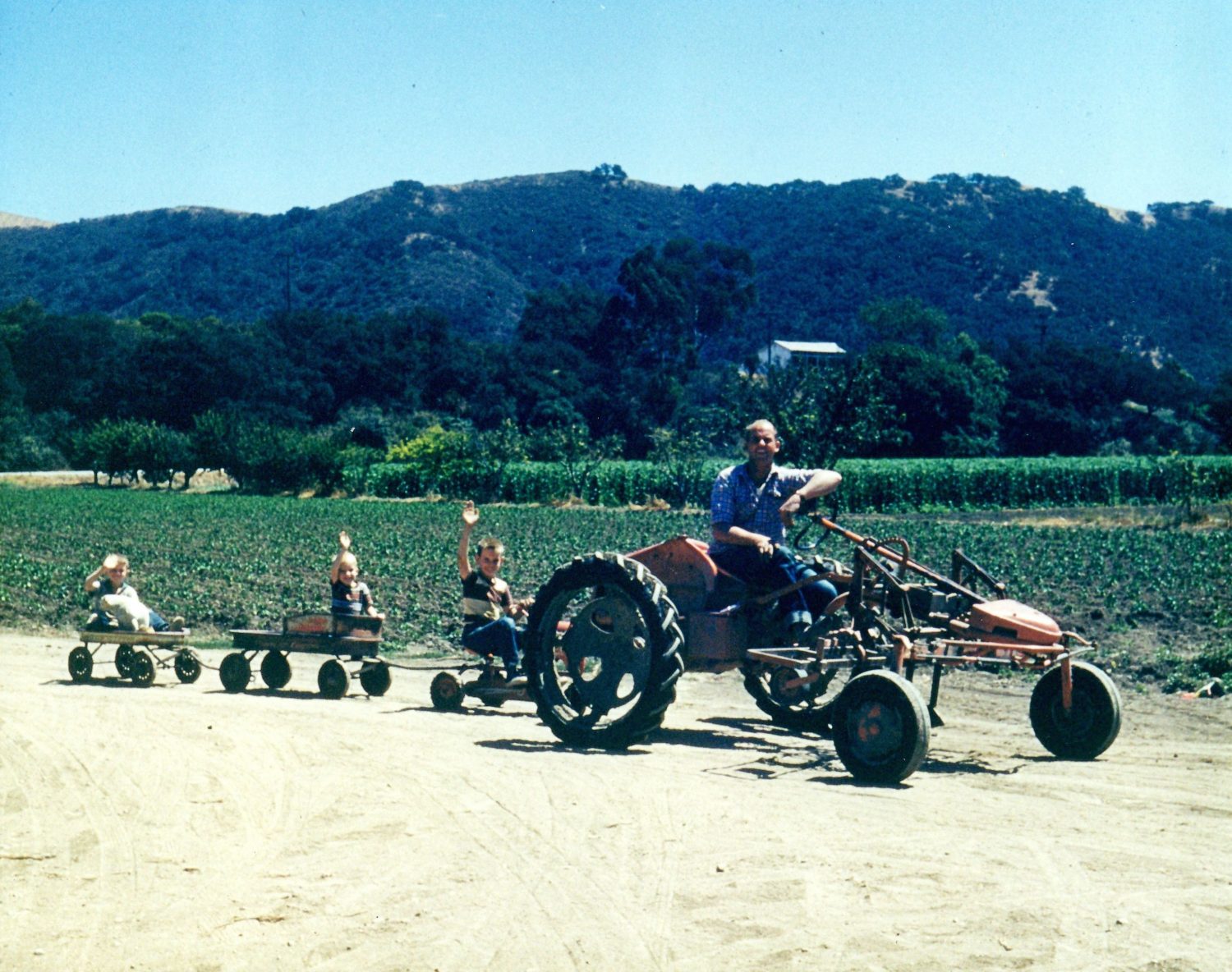 When Warners came to dust the crops with clouds of sulphur and DDT filled the air. Not unpleasant odors went you sniffed it floating on the breeze. Sulphur was sprayed on Tomatoes and peas to fight mildew and DDT. It just killed everything but kids. We could imgine WWI watching those old Stearman biplanes zooming ten feet off the ground and then pulling nearly straight up after flying under Lester Sullivan’s power lines. He flew a Chandell and came right back the way he came and did it again. Dad said he was WWII fighter pilot and wishes he still was. He would call the kitchen phone to say when he was leaving Santa Maria so we knew when to rush out and get as close as possible to the crop he was dusting.