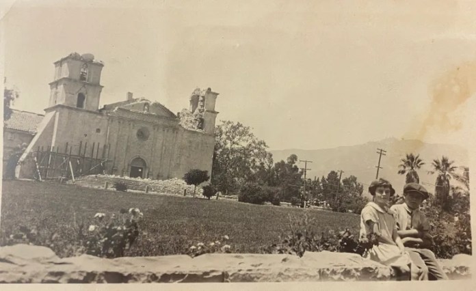 Mission Santa Barbara 1925 after the quake.