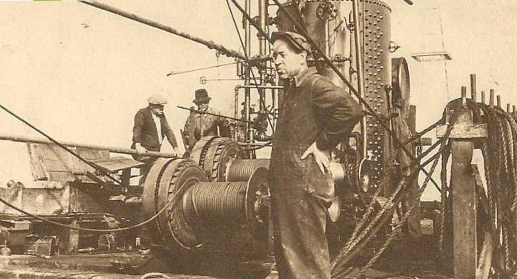 As fast as the piles for the piers at Hydrocarbon gulch were driven, derricks were thrown up, spudded in and the turntables began to whirl. Sometimes the drillers worked over parts of the pier that had almost no planking such was the rush. They wasted no time on guardrails. If you fell, it was in the water if you were lucky and you would simply be fished out. “Joining the Birds” was how they put it.”