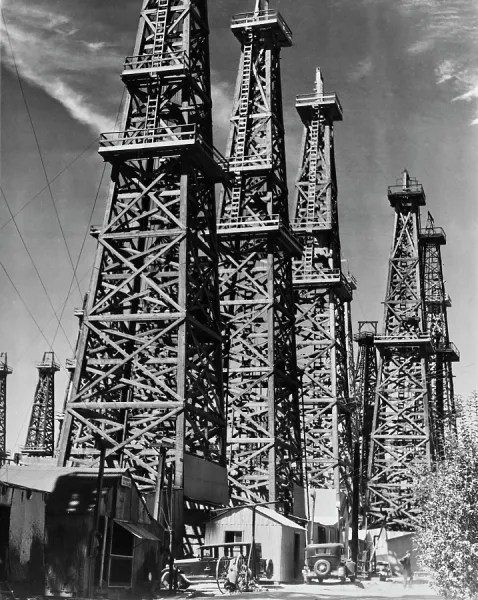 Signal Oil derricks, Eastside. 1932