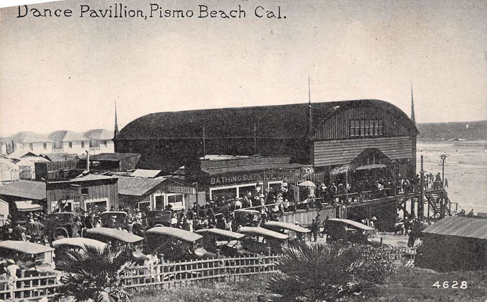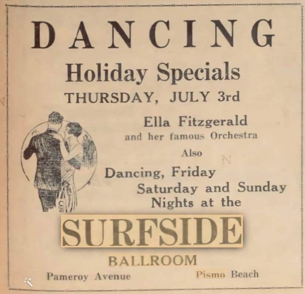 When my grandfather was transferred to Arroyo Grande in 1940 she met my father. While they were courting they used to take his little grey Plymouth coupe down to Pismo Beach to go dancing at the Pavilion. Though Pismo was a tiny little town it had it’s full compliment of Saloons, bars and dance halls. A soupcon of titillating danger hung over it all, especially at the beginning of the war when herds of soldiers from all the military bases flocked to the place. My Dad always said was where the “Debris meets the sea.” There was anything a young man from the sticks could imagine. Pool halls filled with slickers, the filipino gambling halls with, convenient cribs out back and the Beer bars like Mattie’s where, dressed in a silk blouse and velvet trousers. she would hustle those boys by buyin’ the first round for free and pointing out her apartment building down by the pavilion where her Taxi dancers dwelled.****