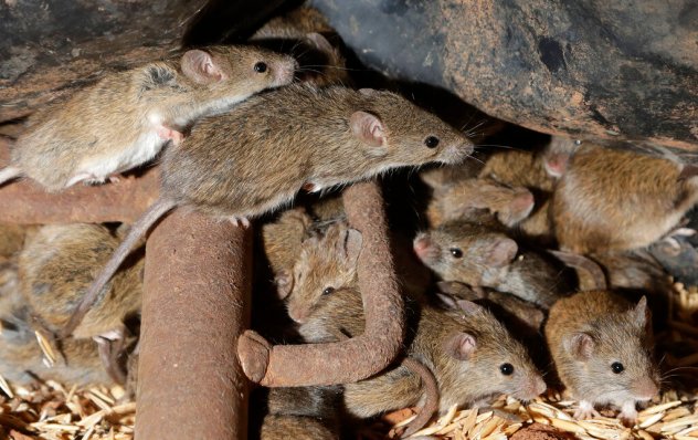 It likewise was a perfect breeding ground for the mouse. With natural enemies like the coyote, owl and hawk nearly eradicated by a new federal program that paid bounties for the killing of predators, the House Mouse ( Mus Musculus ) in the fields lived well and, with all that food, they flourished. Did they ever. The gestation period for mice is 20 days. A single pair of mice can produce more than 16-thousand offspring in a year, so by the fall, millions of the little critters flourished at Buena Vista. Hundreds of millions.