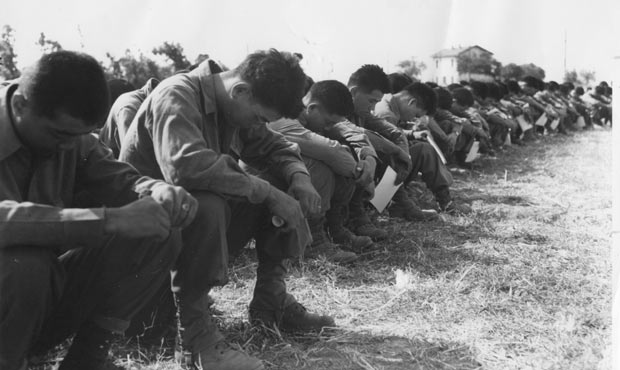 The whole thing was a mess. At the beginning of the war there were thousands of Japanese Americans in the Army. There were college students who served in the ROTC, Territorial Guard from Hawaii and National Guard troops all over the country. They were eager to fight for their country and at first didn’t realize they were an embarrassment to the Army which did it’s best to hide them. Nisei soldiers were actually moved around the country on trains with blinds drawn, not allowed to detrain when there was a stop. Almost all were sent to Camp Shelby near Hattiesburg, Mississippi where they discovered they were considered “White” and were allowed all the privileges claimed by white Americans except for the one prohibiting dating white girls. Just another confusing experience with their status. The boys of the 100th from Hawaii were the most perplexed, being from a place where ethnicity was not a major factor in society.