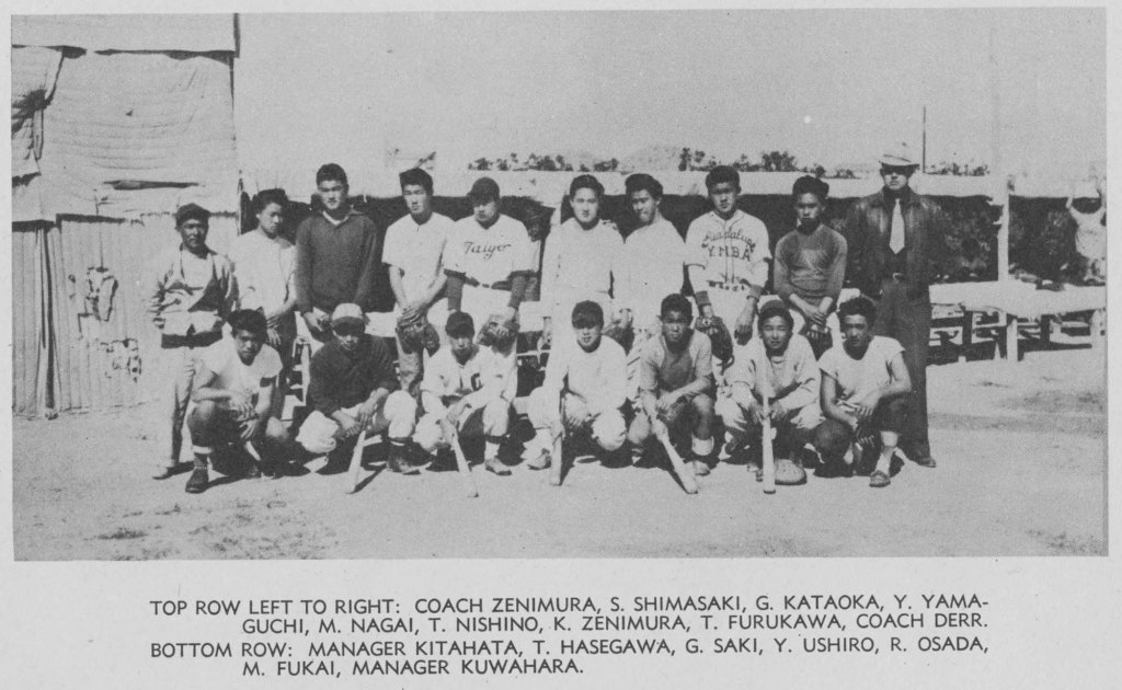 For the three years the 10 camps existed baseball was played year round weather permitting. Snow storms at Tule Lake California delayed games as did howling dust storms at Manzanar. Torrential rains at the Rohwer and Jerome camps in Arkansas washed out the fields and games could be cancelled over intense heat or clouds of mosquitos and biting flies. And yet they still played.