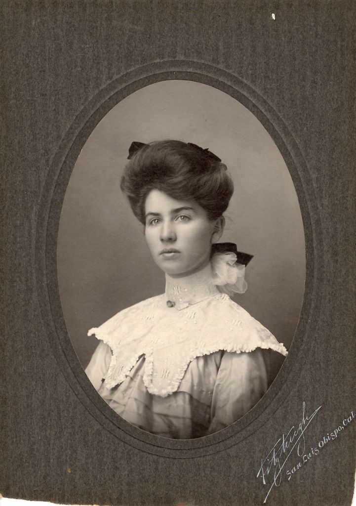 Curious, I pulled one out and removed the lid. Inside were stacks of very old photographs. Some printed on stiff cardboard, bearing the stamp of the photo studios where the family used to go when the it was only way to be photographed. You had to go down to Stonehart’s studio in Santa Maria or the Gainsborough studio or Fitz Hough’s in San Luis Obispo. It was a train ride on the old Pacific Coast Railway either way. Dressed in your best clothes, they would pose you against a backdrop where you had to sit very still while the film was exposed. It’s why you see so few candid photographs from that time. So serious. Or so it seemed.