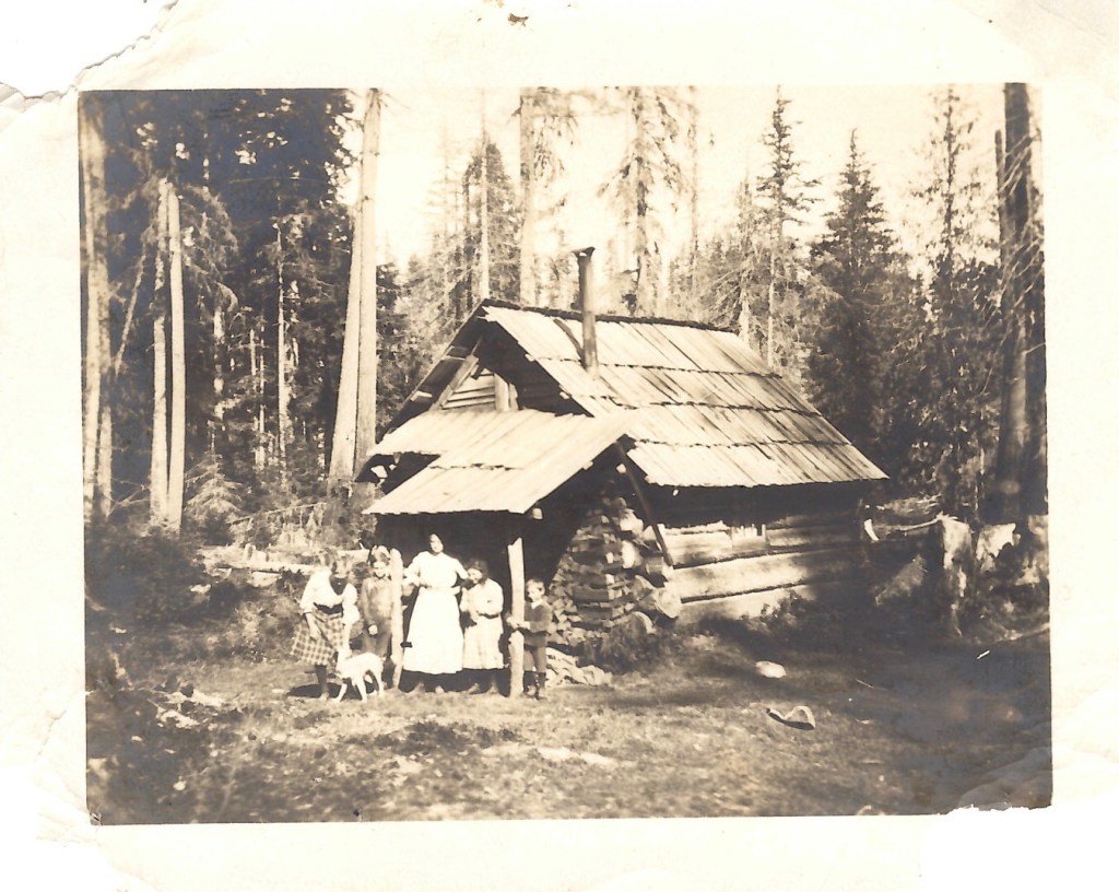 Martha “Mamie” Tyler Kolloch and her students at the log cabin school in the Olympic forest Washington State, 1921 Shannon Family Photo