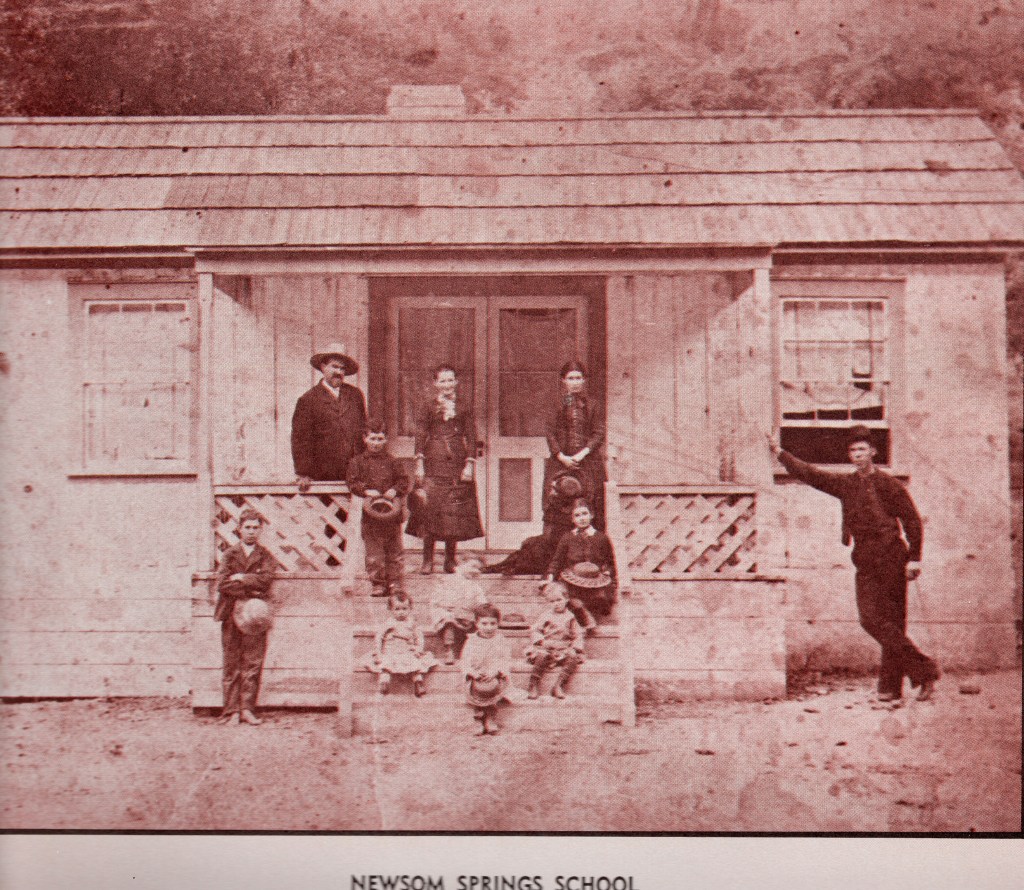 Born in Petersburg, Virginia, Newsom was all of 18 years old. He arrived in old San Luis Obispo and being a literate man and nearly penniless he gladly took the teaching job. Three years later he was teaching school at the Branch family’s Mallagh adobe just downhill from todays Paulding Middle School. In 1863 he married Francisco Branch’s daughter Anna and by 1870 was running a farming operation on the lands that had been deeded to his wife by her father. He established a small school there for his own children which eventually numbered eleven; poor Anna. He also taught the children of his neighbors. They were still taught in Spanish. In the 1880 census he listed himself as a hotel keeper because with the discovery of the hot sulphur springs in the upper Guayal canyon he had built a small hotel where people could come and “Take the waters.” No longer a poor man his politics had changed concerning schools, especially High Schools.