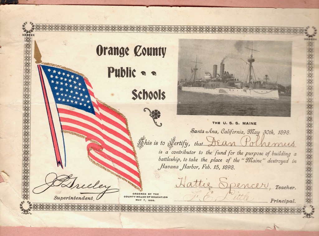 Little Dean Polhemus gave five cents to build a new battleship Maine. 1898. His son would die at sea in WWII. Patriotism takes many forms. Shannon Family Photo
