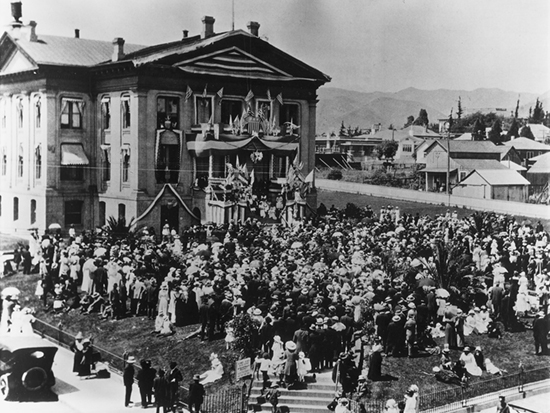 Clara was an adventurous from the get-go. She fell out of trees, slammed window sills on her hands, nearly drowned and was frequently sick. Malaria in Panama, Pneumonia in cold and wet San Francisco and when the family moved to Visalia she promptly contracted Valley Fever. In the 1870’s only three in five children lived past five years. Scarlet Fever, Cholera, Typhoid, Measles, Smallpox, Pneumonia, and Influenza along with the dangers of day to day living which brought rabid animals, blood poisoning, kicking horses and shooting accidents which nearly every family was familiar with. There was not much John and Rose could do to protect her, something common to all parents in the still wild west of the 1870’s. Visalia was still frontier, dusty, dirty, abundant saloons with rough characters everywhere and frequently heeled. With her friends, Clara ran free with little adult supervision. She was forming the character which was to lead her to Arroyo Grande where she was to lead the effort to save a school.