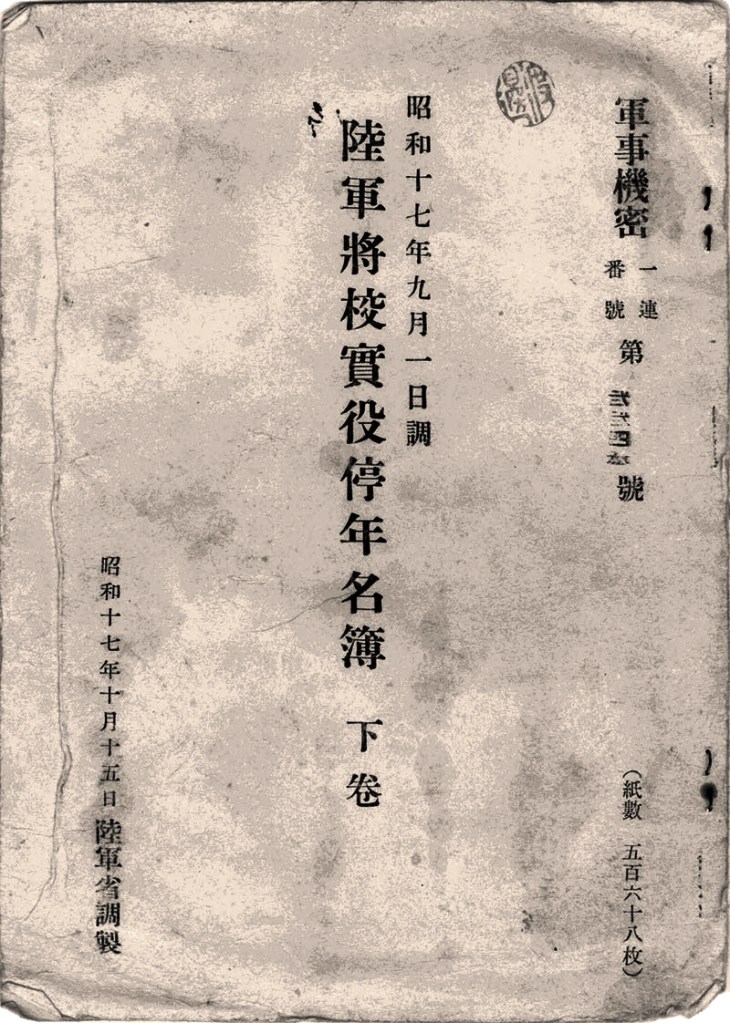 A Detail from the Japanese Imperial Navy’s Warship and Officer list. National Archives.