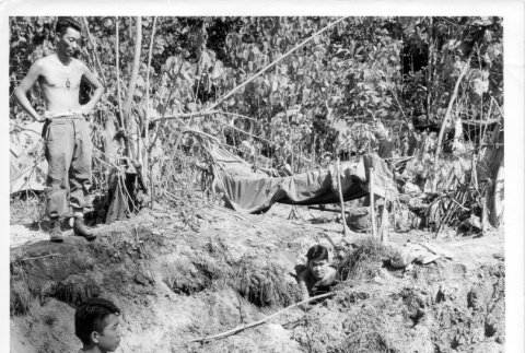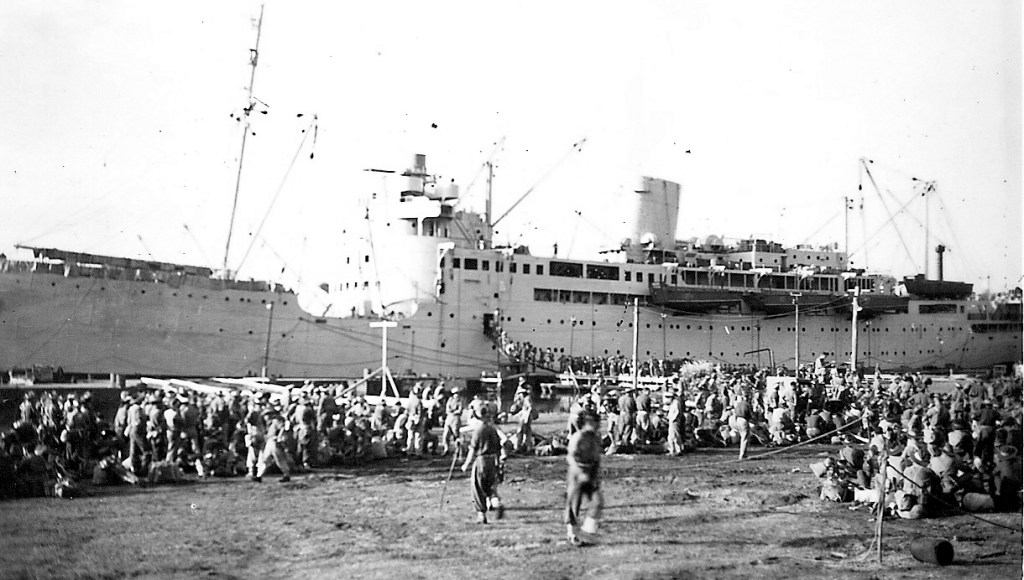 Army service soldiers from the 93rd Division (Colored) worked around the clock unloading supply ships and building shelters, kitchens and other necessary support structures including showers and laundries.