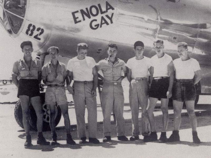 Coronal Paul Tibbets and the crew of the Enola Gay in August 1945. UPI photo