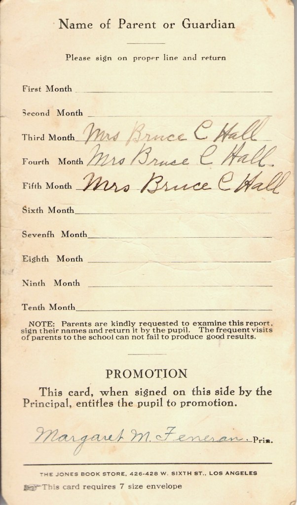 With this inscription my mother closed her school career on a high note. There could have been no finer school in California.
