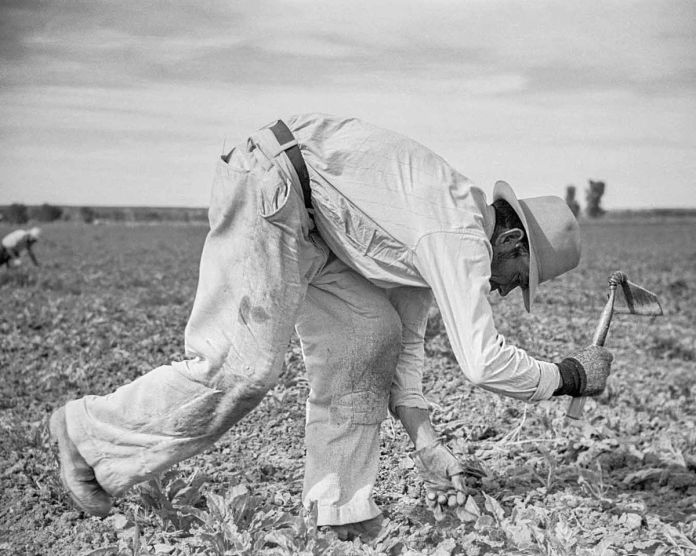 One of the most brutal labor intensive crops grown at the time, sugar beets used a legion of itinerant laborers who did almost all of the planting, weeding and production by hand. The infamous “Cortito” or short handled hoe was prominent in the fields. Known by Mexican laborers as the “Brazo de Diablo,” or the devils arm, it was the only weeding tool in use at the time.** It would be forty years before it was phased out of existence.